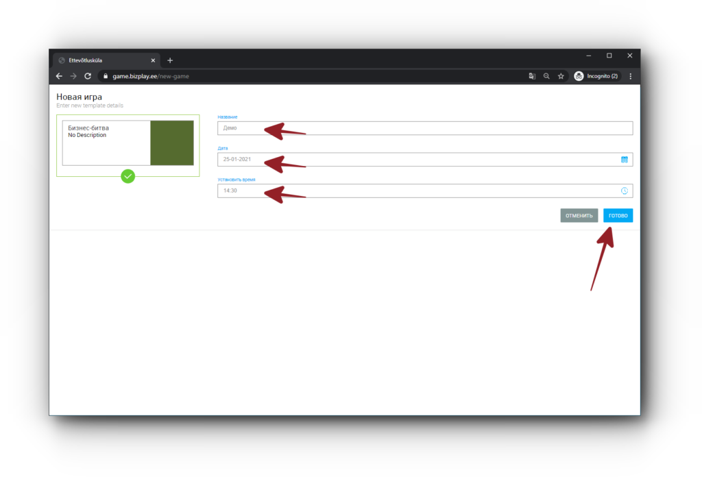 3. В случае каждой игры вы можете указать новое название, дату и время. После их ввода нажмите на надпись «Готово».