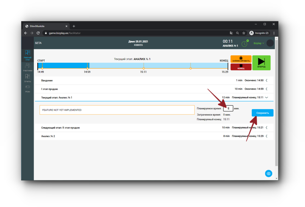 4. Введите новое время этапа и нажмите на надпись «Сохранить».