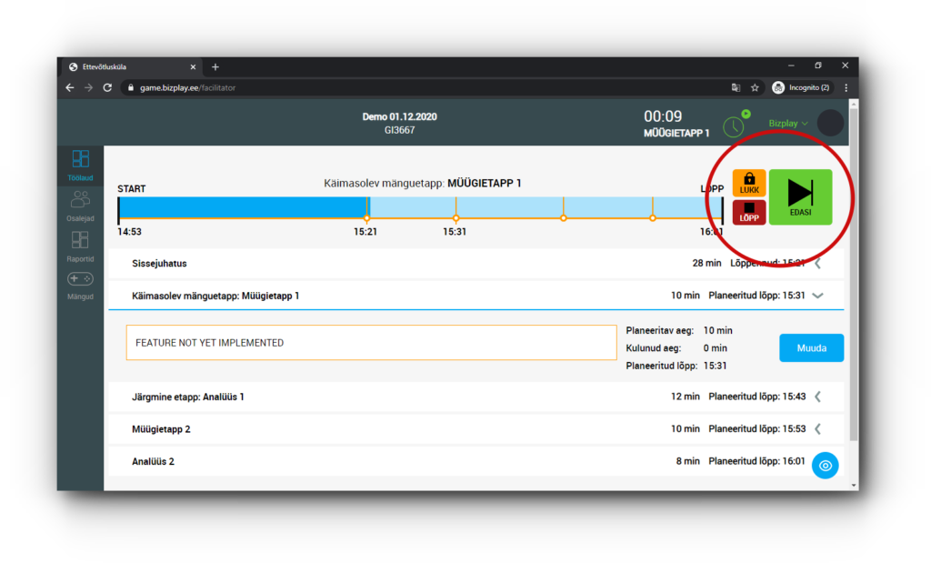 Mänguetappide juhtimiseks on juhendajal eraldi tööriist, millega: